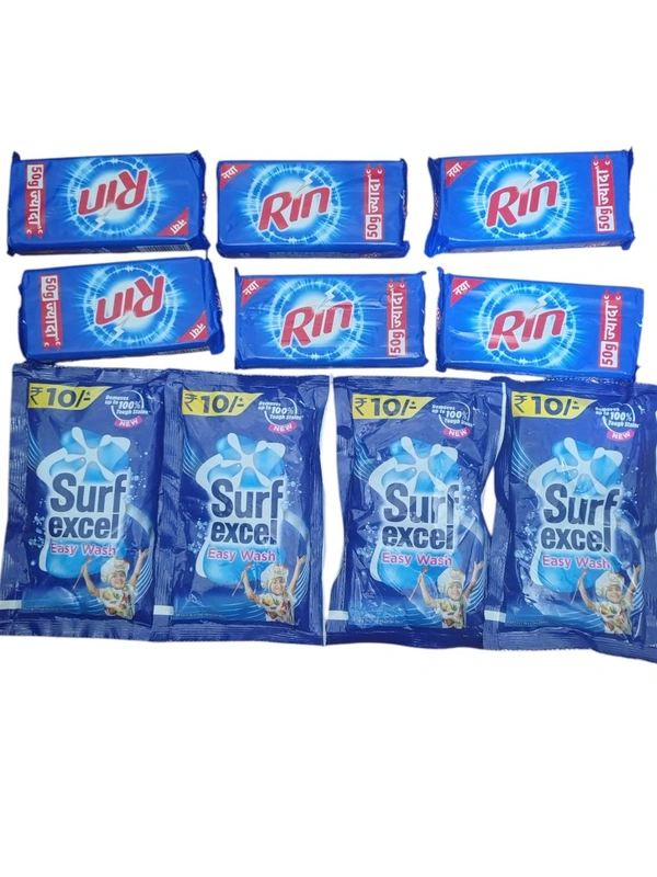 - Convenient Pack: Includes 4 packs of Surf Excel Powder and 6 bars of Rin Soap for long-lasting use.
